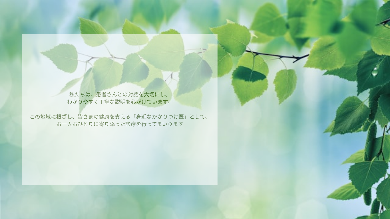 また、緑豊かな環境に囲まれた当院で、落ち着いて診療を受けていただけます。